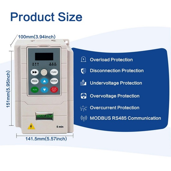 6.启动转矩:矢量控制模式下,0.5Hz可达到额定转矩的150%